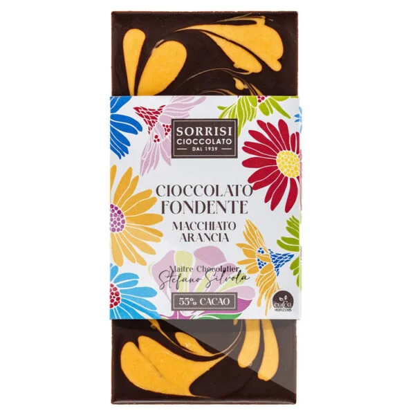 Die Tavoletta Fondente Macchiato Arancia von Boella&Sorrisi verbindet dunkle Schokolade mit einem lebhaften Hauch Orange. Eine Kombination, die sofort an sonnenreife Zitrusfrüchte und mediterrane Wärme erinnert. Die Grundlage bildet ein 55%iger Kakaoanteil aus nachhaltig angebauten Kakaobohnen mit warmen, fein gerösteten Aromen und einem sanften, leicht fruchtigen Unterton.
